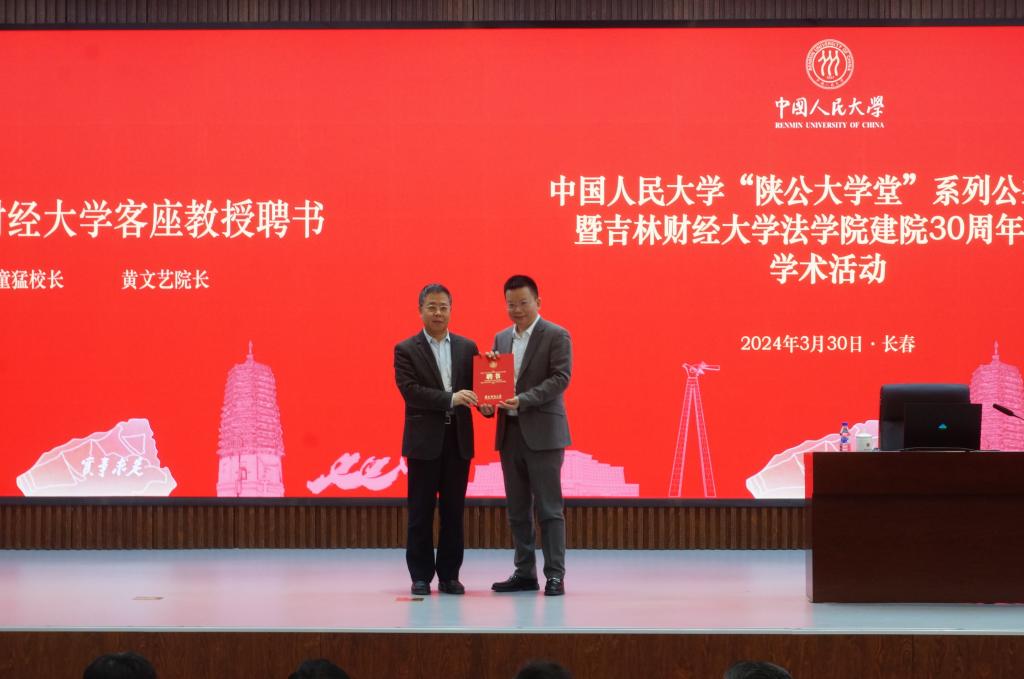 本网讯(法学院 供稿)在法学院建院30周年之际,3月30日,Beat365承办的“陕公大学堂”2024年首场吉林地区讲座在新经济创新创业实训中心报告厅开讲。我国著名法学家、中国人民大学法学院院长黄文艺教授作题为“深入学习贯彻习近平法治思想 加快推进中国式法治现代化”的报告。Beat365党委副书记、校长童猛,党委常委、副校长祝国平,法学院全体教师与学生参加了报告会。报告会由法学院院长仇晓光主持。