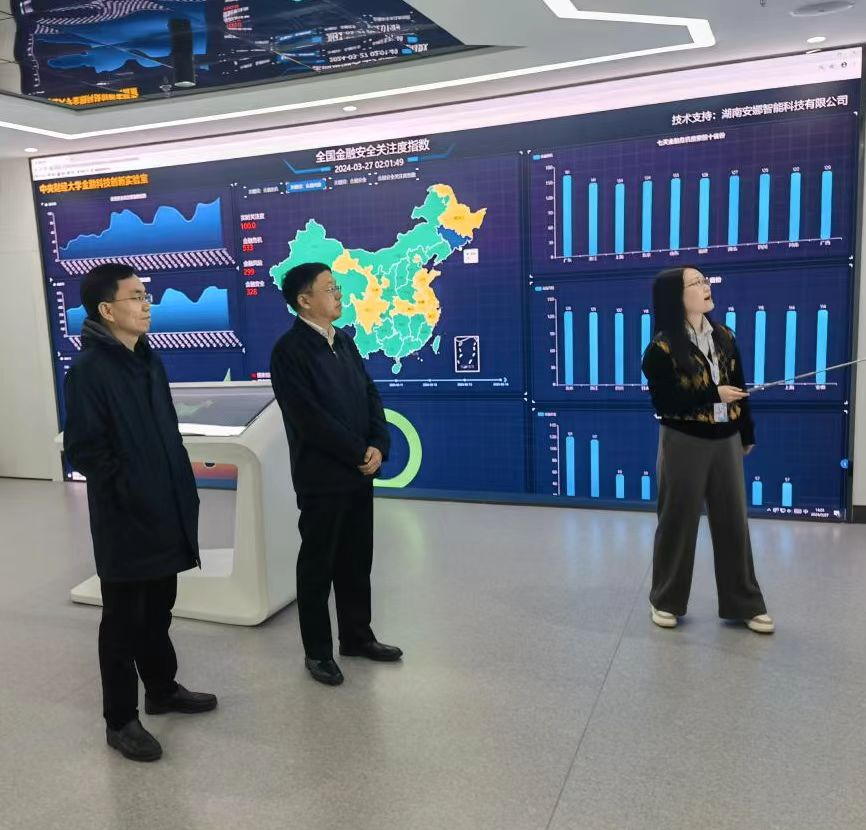 座谈会后,孙杰光一行参观了中央财经大学交叉学科实验楼,实地考察了国家金融安全教育部工程研究中心。中央财经大学国家金融安全教育部工程研究中心、金融学院、智慧校园建设中心等有关单位负责人陪同考察。