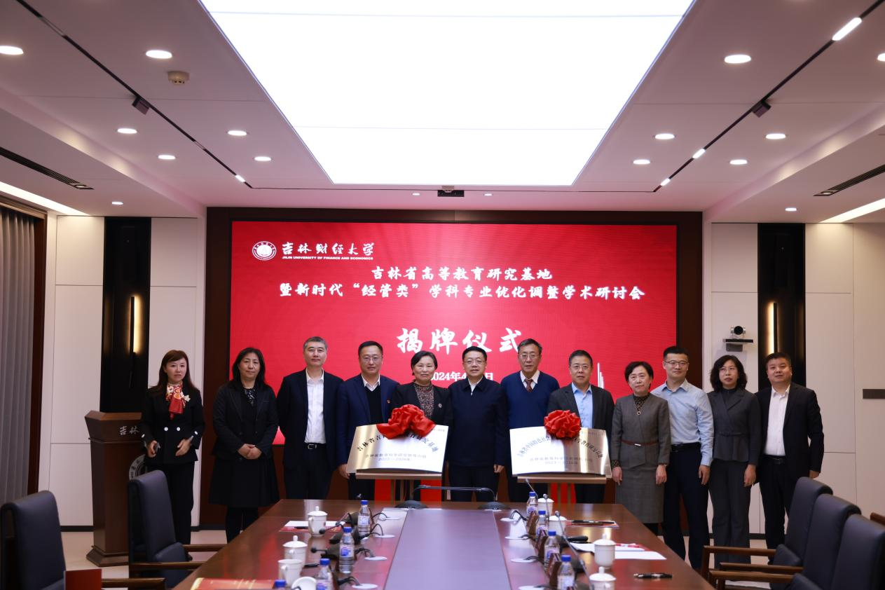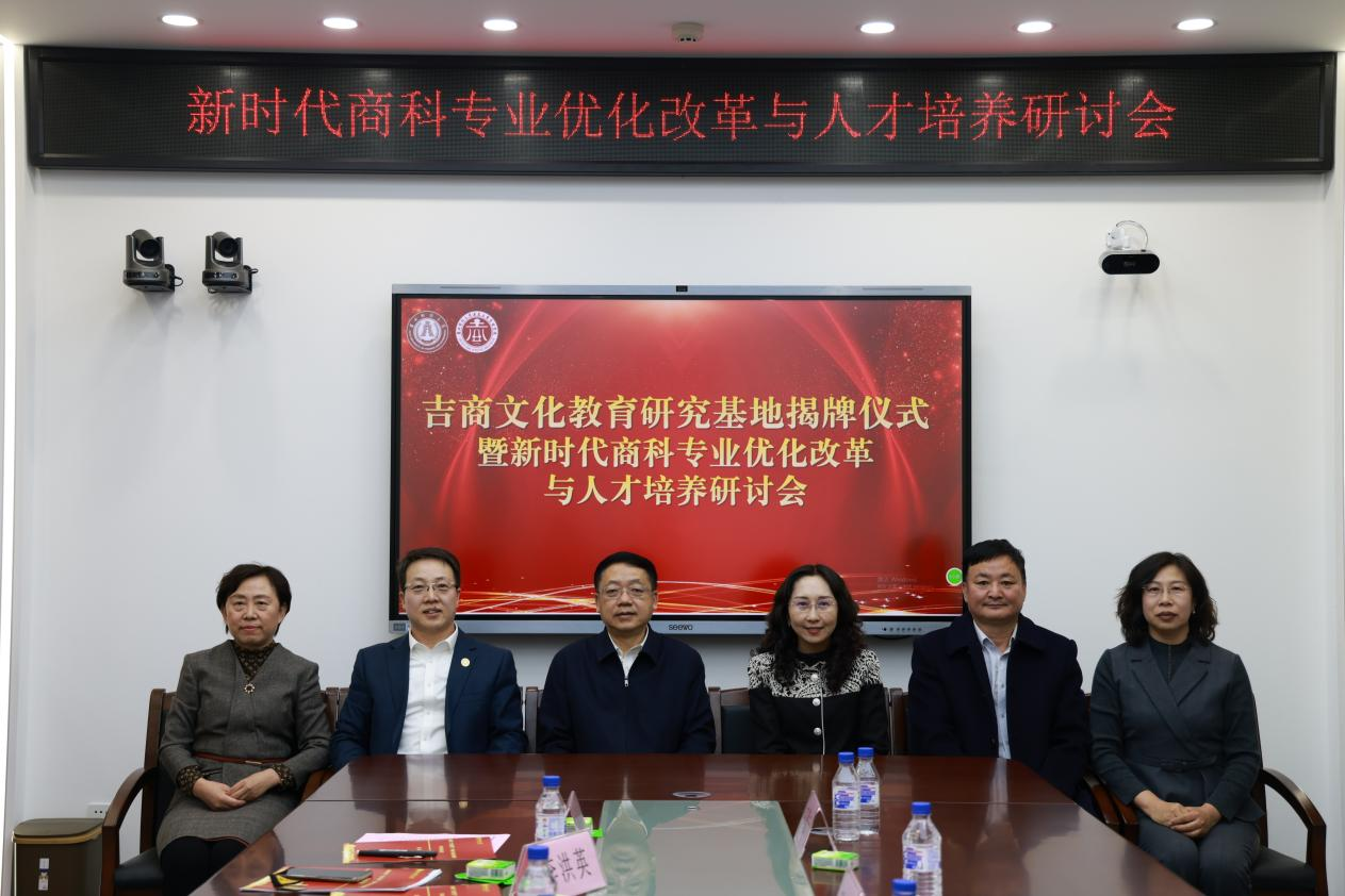 本网讯(教务处 供稿)4月2日下午,由吉林省教育科学规划研究领导小组批准成立的中国特色社会主义政治经济学教育研究基地、吉林省吉商文化教育研究基地揭牌仪式暨新时代“经管类”学科专业优化调整学术研讨会在Beat365新经济创新创业实训中心B435会议室举行。吉林省教育科学院党委书记、院长郭天宝,吉林省教育科学院科研管理办公室主任、吉林省教育科学研究领导小组办公室常务副主任周颖华,学校党委书记孙杰光,党委副书记、校长童猛,副校长王菁华,两个基地学术研讨会专家及相关教师出席,会议由王菁华主持。