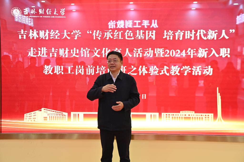 最后,孙杰光介绍了学校办学的红色历史、专业建设发展历史,全方位讲解了学校党的建设、师资队伍、学科建设、人才培养、科技创新、社会服务、校园文化、国际交流合作等方面取得的成就,并对学校未来发展建设宏伟蓝图作了深入阐释。孙杰光指出,学校完整经历了党的四大历史时期,学校的人才培养目标始终以“为党为国、为区域经济发展培育财经英才”为初心,青年教师要认真学习了解和落实好“六馆”建设及展陈的核心内容,尽快融入吉财、服务吉财、奉献吉财,全面履行教书育人职责和使命,落实好立德树人根本任务,为建设国内一流财经大学和服务吉林全面振兴新突破贡献吉财力量。
