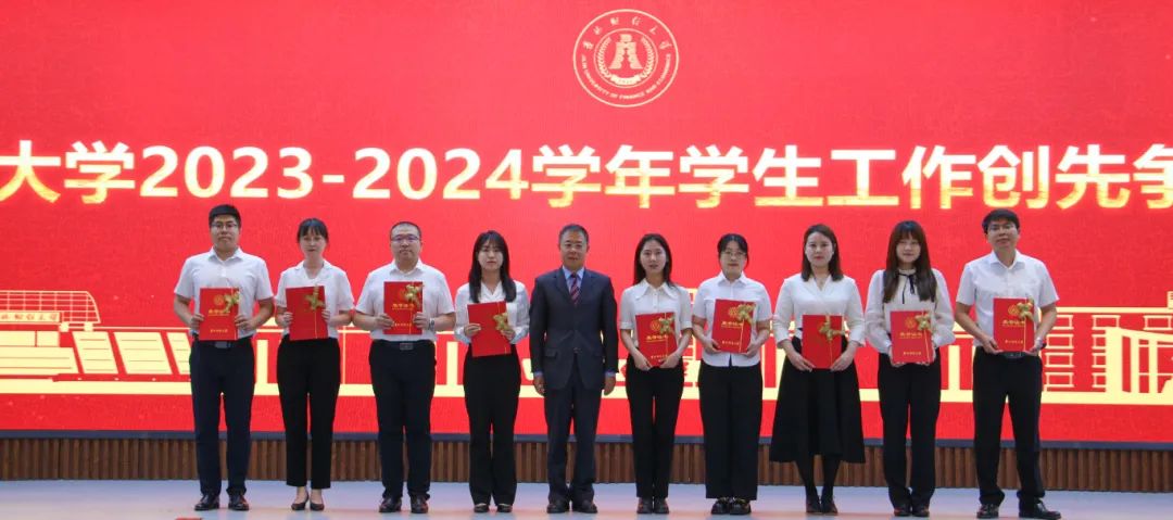 颁奖仪式上,管理科学与信息工程学院崔瀚予、税务学院任慧、外国语学院陈婷伟、国际经济贸易学院陶艳、国际交流学院张雨荘、经济学院伦旖遥、会计学院叶雨薇、金融学院武慧苑、统计学院诸宇菲、应用数学学院段炳西等十名荣获2023年度十佳大学生荣誉称号的同学受到表彰。视频展示了十佳大学生的成长故事,相关辅导员宣读颁奖词,各学院党委(党总支)书记为本学院十佳大学生颁发奖牌和荣誉证书,获奖学生分别发表感言,表达自己获得这一殊荣的欣喜和对学校培养的感激之情。