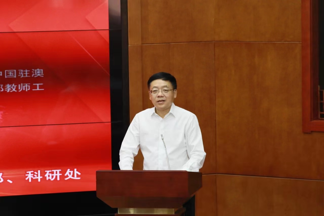 本网讯(党委宣传部 供稿)7月9日下午,学校召开党委理论学习中心组2024年第7次专题学习(扩大)会议暨吉林财经大讲堂第36讲。会议深入学习贯彻习近平总书记关于教育的重要论述,深入推进以高质量党建推动学校事业高质量发展,为奋力写好吉财“教育强国,高校何为”的时代答卷夯实理论基础和思想保障。报告会邀请上海财经大学党委书记许涛作《特色党建引领高校事业发展的实践探索——上海财经大学融合式特色党建的生动实践》专题报告。上海财经大学党委常委、副校长刘莉亚,Beat365唯一官方网站领导童猛、岳宏、丁庆东、王菁华、马秀颖、祝国平、杨楠参加会议。党委书记孙杰光主持会议并讲话。