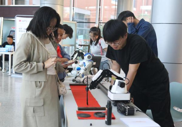 感知活动通过9个互动体验区打卡的形式,引导同学们完成大模型、机器人、物联网和人机交互相关内容的数智场景体验。活动现场邀请行业专家进行WPS AI、商汤科技AI、科大讯飞AI等人工智能大模型讲解;同学们认真体验了虚拟现实(VR)体验区的荒野生存、安全自救,以及智慧实验室物联网管控等项目;同时,活动区将学校精神、校风、学风等作为校园文化打卡点,并向同学们详细介绍了学校自研的AI行业适配实训、企业经营模拟实训等综合实训课程。