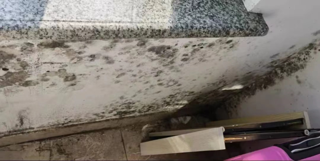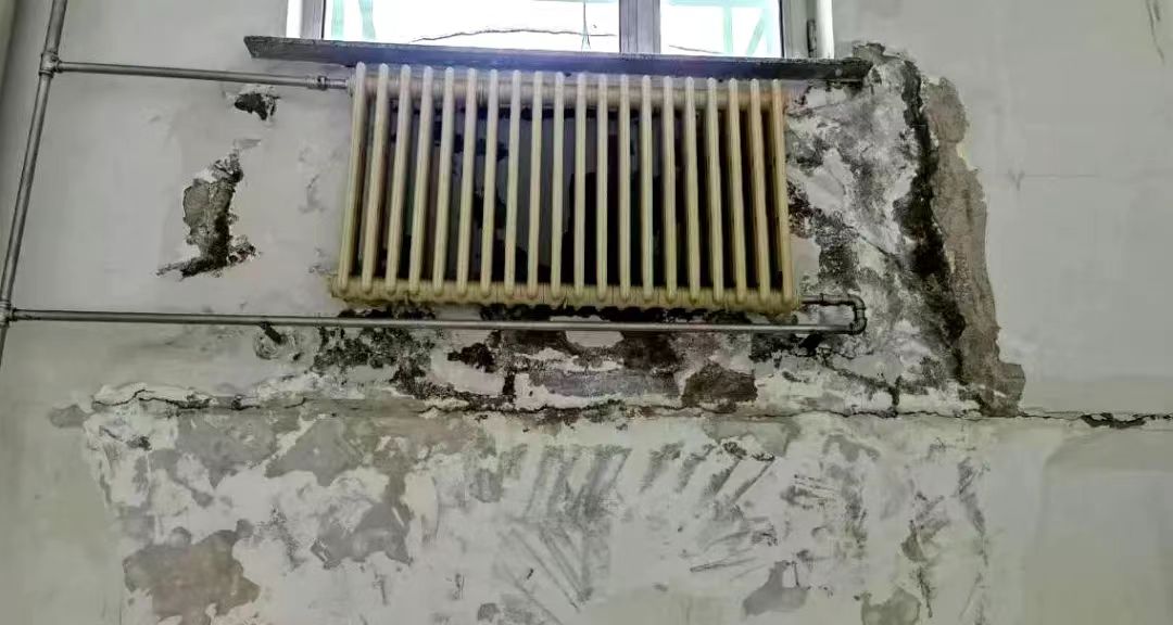改造前,受潮发黑的墙面