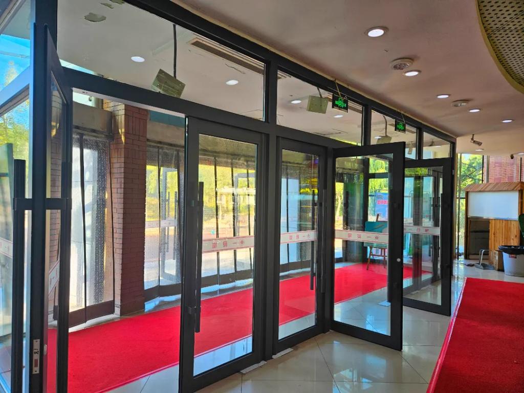 在阳光的照射下,焕然一新的玻璃门显得格外明亮,新门不仅美观,还更加坚固,能更好地抵御风雨。