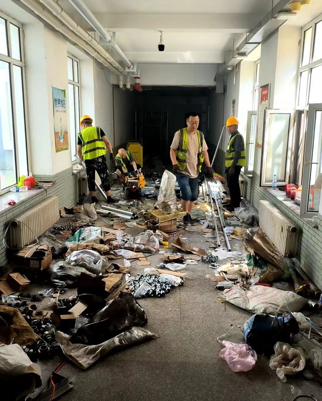 热火朝天,灰尘肆意的施工场面是否超出你的想象,心里有没有小窃喜,这个学期支持学校施工,选择回家度过舒服快乐的暑假,是个非常正确的决定,为自己的明智+1。