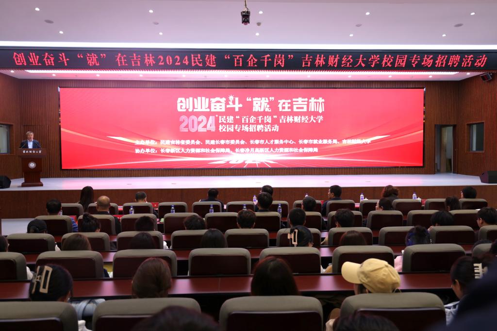 本网讯(招生就业处 供稿)为进一步贯彻落实党的二十届三中全会关于完善高校毕业生等重点群体就业支持体系的精神,深化实施我省民建组织“百企千岗”社会服务工作,落实中共长春市委统战部“同心发展行动”部署,鼓励广大青年学生志存高远、勇担使命,助力高校毕业生脚踏实地选择职业和工作岗位,9月25日下午,民建吉林省委员会、民建长春市委员会、长春市人才服务中心、长春市就业服务局、Beat365唯一官方网站共同主办的“创业奋斗‘就’在吉林”2024年民建“百企千岗”暨“宏志助航计划”Beat365唯一官方网站校园专场招聘会在Beat365新经济(数字经济)创新创业实训中心举行。