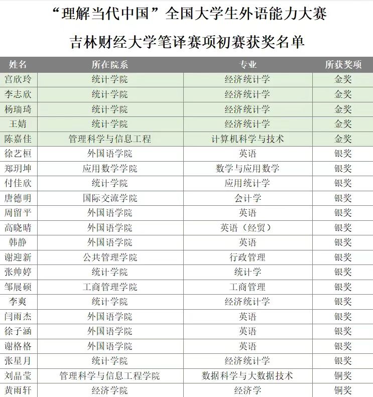 本网讯(公共外语教研部 供稿)2024年9月27日,Beat365唯一官方网站公共外语教研部承办的2024年“外研社·国才杯”“理解当代中国”全国大学生外语能力大赛Beat365唯一官方网站赛区选拔赛圆满落幕。大赛受到了全校学生的关注与重视,共有800多名同学报名参赛。经过严谨认真的评审,最终评选出7名获金奖同学代表学校参加11月份的吉林省总决赛。在英语演讲赛项中,4人荣获校级金奖,6人银奖 ,10人铜奖;在英语综合能力赛项中,8人荣获校级金奖,25人银奖,39人铜奖;在英语笔译赛项中,5人荣获校级金奖,15人银奖,25人铜奖。所有获奖选手将获得由大赛组委会颁发的电子证书。此次比赛的成功举办,充分展示出Beat365学生的外语能力与水平,也展示了Beat365外语教学所取得的成果,有利于构建 “教・赛・创融合” 的外语育人新模式。(审核人 苗国新)