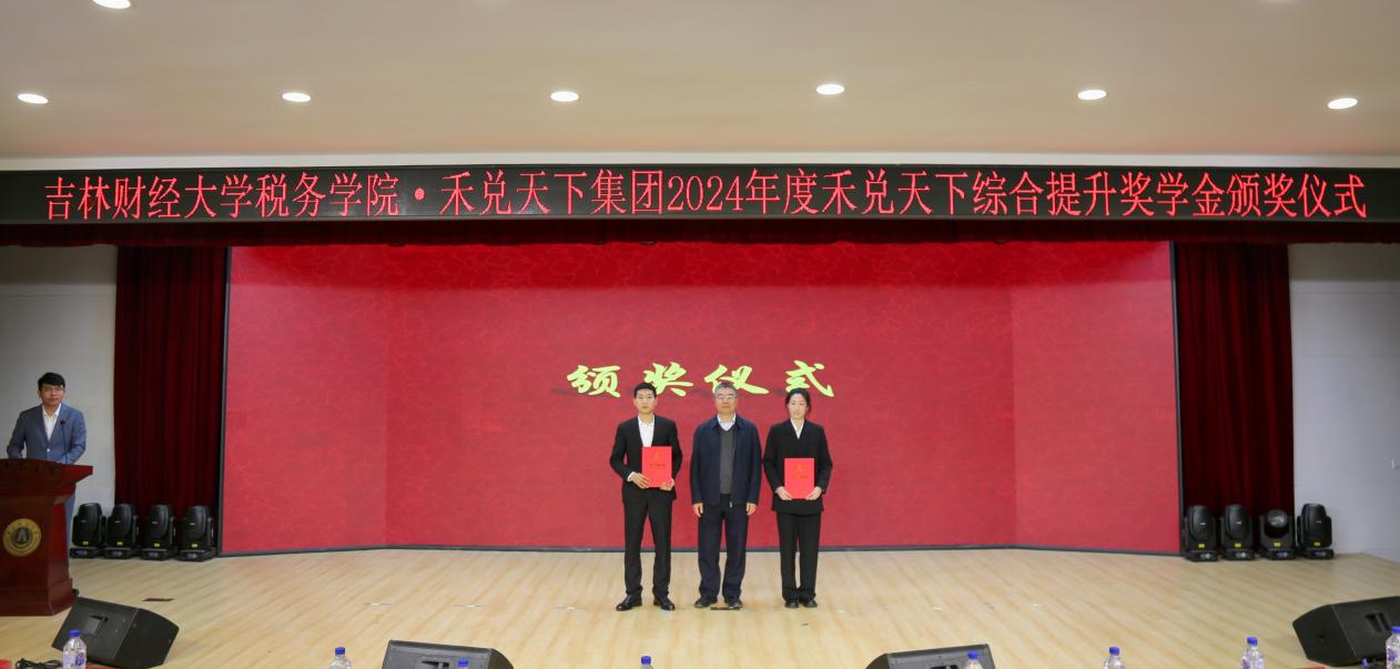 本网讯(税务学院 供稿)10月9日,税务学院举办2024年“禾兑天下”综合提升奖学金颁奖仪式。校党委副书记刘鹤参加了仪式并为获奖学生颁奖。“禾兑天下”综合提升奖学金创立者、税务学院99级校友、禾兑天下集团董事长王亭喜参加了颁奖仪式。