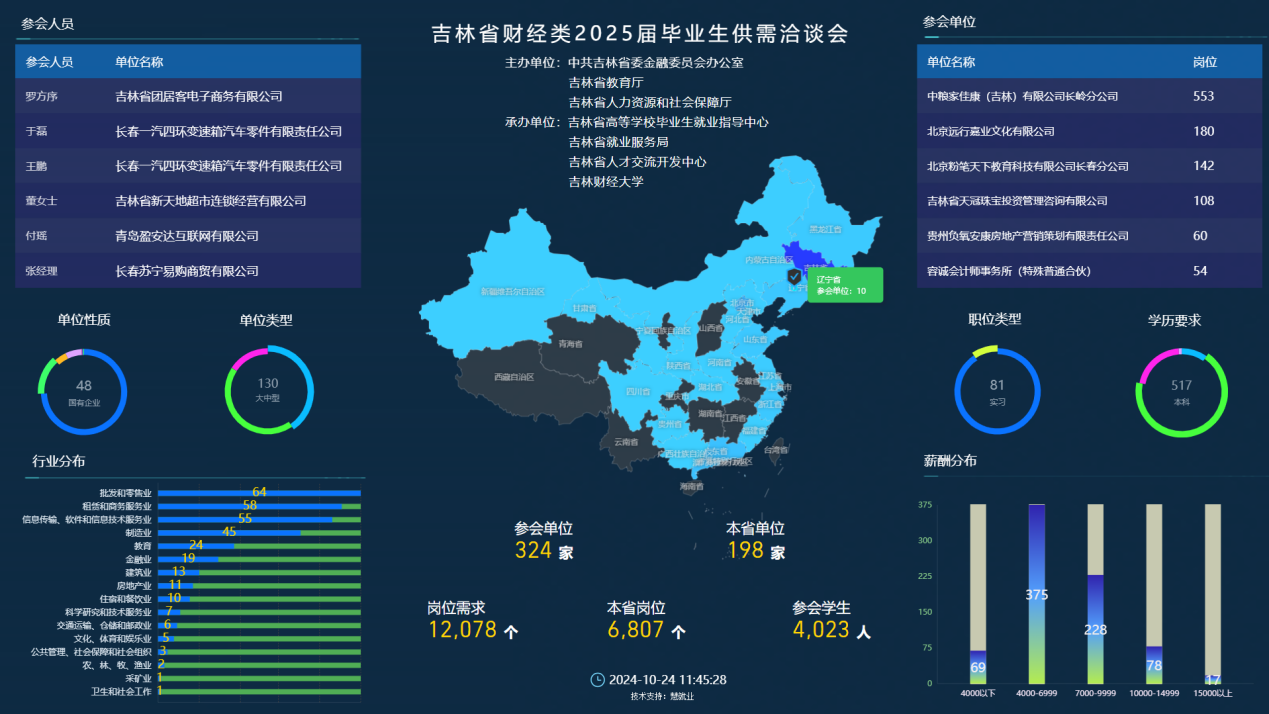 招聘会采取“校园招聘会+网络招聘会+直播带岗”等多位一体的服务模式。招聘会现场除了设置企业招聘展区外,还设有政策咨询区、企业学院对接区、就业指导区、“直播带岗”专区等,为用人单位提供了深入了解学校亮点特色的空间,也为参会毕业生提供了全面了解各项留吉就业创业政策的平台。据统计,本次招聘会吸引了长春长客阿尔斯通轨道车辆有限公司、中国人寿保险股份有限公司吉林省分公司、吉林省信托有限责任公司、中国邮政集团有限公司吉林省分公司等324家用人单位参与,涵盖财会、金融、税务咨询、教育、法律、信息科技等多个领域,提供就业岗位12078个,共有Beat365唯一官方网站及吉林工商学院、长春财经学院等多所高校的4000余名毕业生参加。