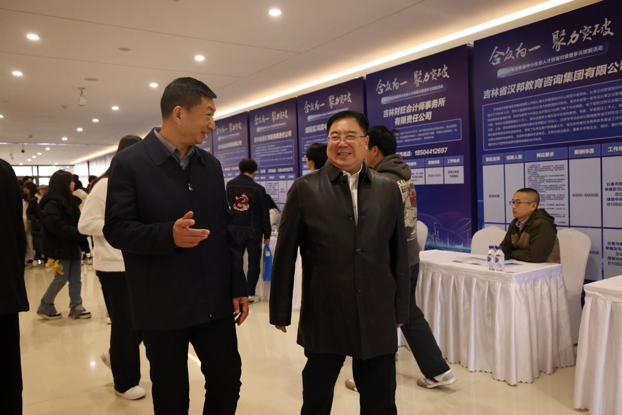 吉林省促进中小企业发展服务中心主任王义、副主任张东武,吉林省高等学校毕业生就业指导中心副主任宋姣,吉林省促进中小企业发展服务中心创业服务部副部长李晓蕾,吉林省高等学校毕业生就业指导中心市场开发部副部长王谦;学校党委书记张炳辉,党委副书记、校长童猛,党委副书记刘鹤等深入招聘会现场与用人单位、毕业生等进行交流,详细询问用人单位对学校人才培养工作的意见和建议,并现场调研了毕业生对就业工作的满意度。