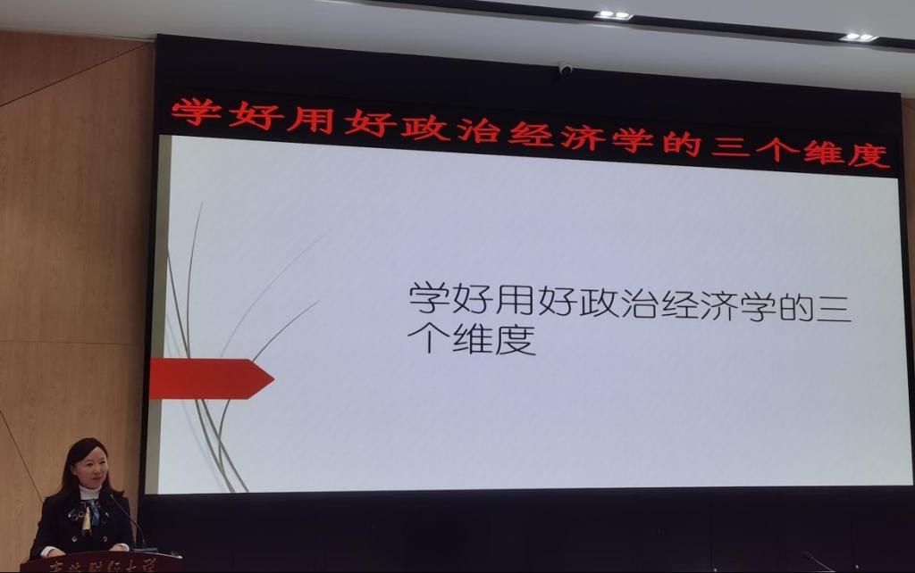 经济学院教师代表、经济学院习近平经济思想理论学习小组成员、学院研究生和本科生聆听了报告会。报告会由张洪梅教授主持。(审核人 张洪梅)