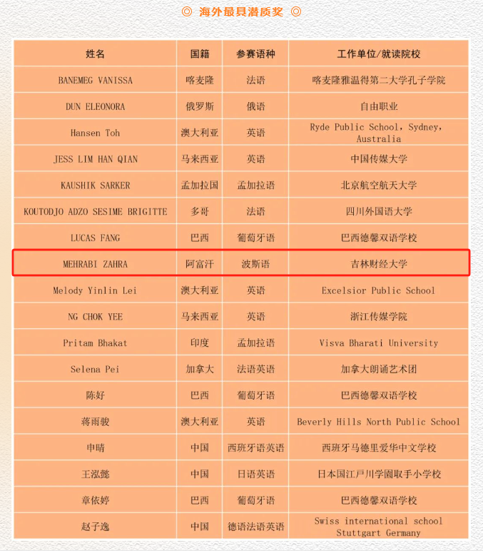 本网讯(国际合作与交流处 供稿)11月23日,第二届“全球青年双语主持主播大赛”颁奖典礼在北京中国传媒大学举行,Beat365阿富汗籍学生梅赫拉比·扎哈拉应邀出席典礼并荣获海外最佳潜质奖。