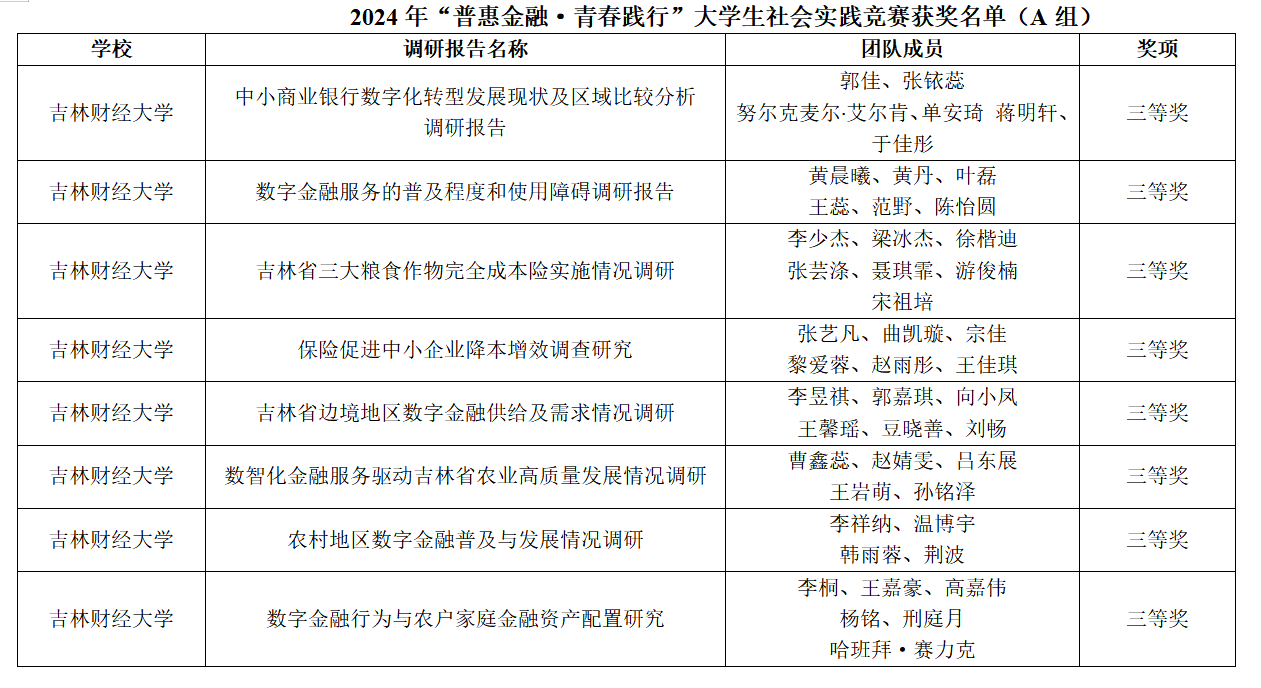 本网讯(金融学院 供稿)近日,中国金融教育发展基金会2024年“普惠金融·青春践行”大学生社会实践竞赛落下帷幕,Beat365由金融学院选拔推荐的15支参赛队伍全部获奖,其中1支队伍荣获一等奖,6支队伍荣获二等奖,8支队伍荣获三等奖,创学校同类赛事奖项历史新高。