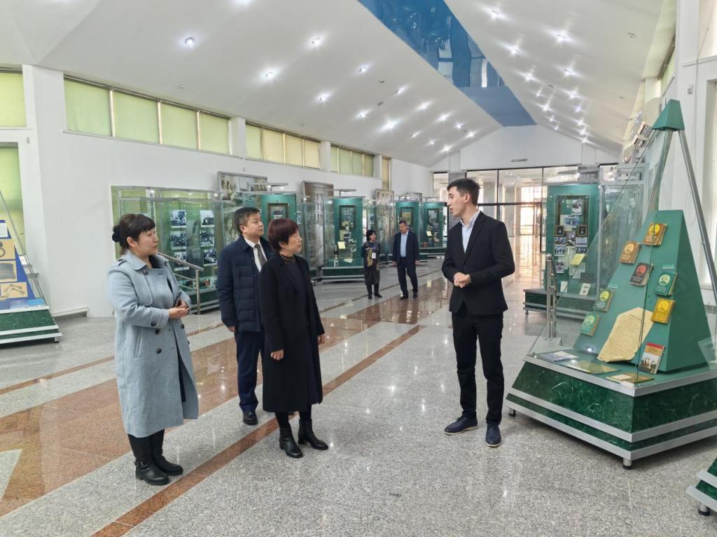 11月29日,代表团访问哈萨克斯坦阿里·法拉比哈萨克国立大学。通过参观该校校史馆,代表团深入了解了该校深厚的历史底蕴与学术成就。该校最新QS世界高校排名位列第163位,已与北京大学、上海外国语大学、武汉大学等43所中国高校建立合作关系。代表团与该校副校长耶金、科学创新系主任马尔古兰、国际合作部主任埃斯波尔、系教务主任巴克特开展了深入交流,双方积极探索实施硕博联合培养、教师互访等多种方式的交流渠道,并达成初步合作意向。