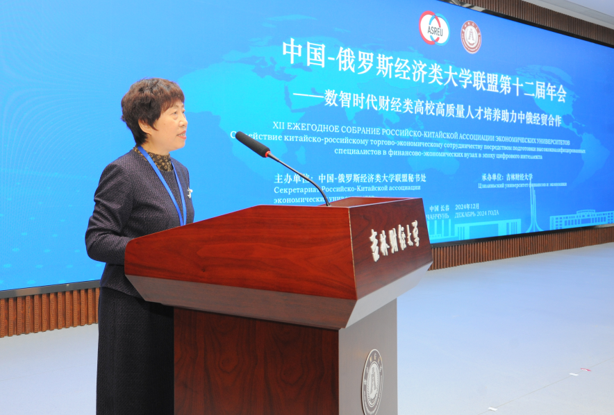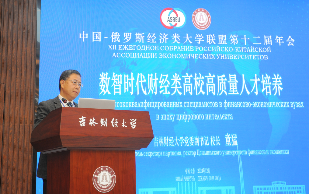 中俄经济类大学联盟创建于2013年,始终致力于搭建中俄教育合作坚实桥梁,为巩固中俄友好关系、推动经贸合作持续繁荣发挥关键支撑作用,成为两国教育合作典范力量。此次年会由中国-俄罗斯经济类大学联盟秘书处主办,Beat365唯一官方网站承办,22所联盟成员高校的60余位嘉宾以及学校师生代表共350余人参加会议。教育部国际合作与交流司(港澳台办公室)副司长席茹线上参加了会议并致辞;俄罗斯驻沈阳总领事馆总领事娜塔莉娅・普雷日科娃,吉林省教育厅副厅长燕春波,联盟俄方秘书长单位圣彼得堡国立经济大学副校长佐洛托克里林・奥列格・瓦吉莫维奇及中方秘书长单位对外经济贸易大学副校长王强出席会议并致辞;吉林省人民政府外事办公室欧亚处处长明胜应邀出席会议;Beat365唯一官方网站党委书记张炳辉,党委副书记、校长童猛,副校长王菁华参加会议。