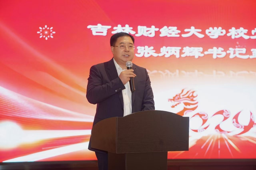 张炳辉代表学校党委对上海校友会在服务校友成长、助力母校发展、深化内外联络、加强校友会建设等方面取得的显著成绩表示衷心的感谢,并向与会校友和嘉宾介绍了学校2024年度在人才培养、教学改革、科研创新、师资引育、学生竞赛、就业服务、社会影响等工作中取得的长足进步。张炳辉指出,学校的办学影响力正实现跨越式提升,全校师生正以更加昂扬的姿态和更加顽强的斗志,为建设国内一流财经大学而不懈奋斗。在学校即将迎来建校 80周年之际,张炳辉发出特别邀约,请海内外校友集众智、聚合力,共同办好建校80周年的庆祝活动,共同见证母校历史上的重要里程,共同展现母校的辉煌与吉财力量。