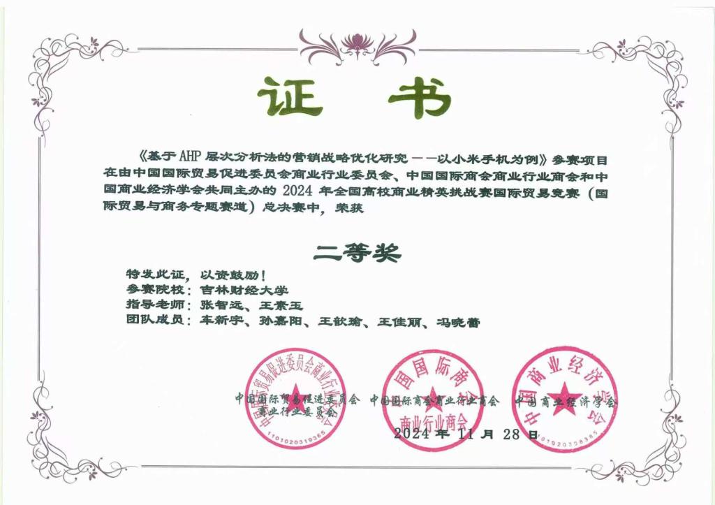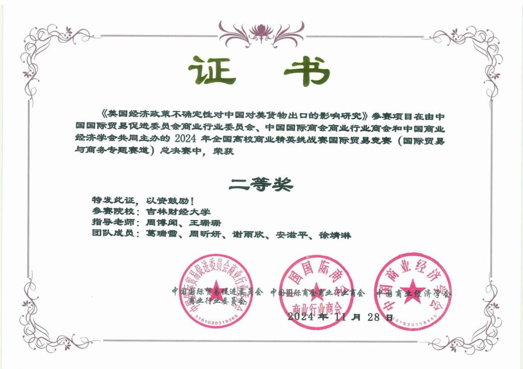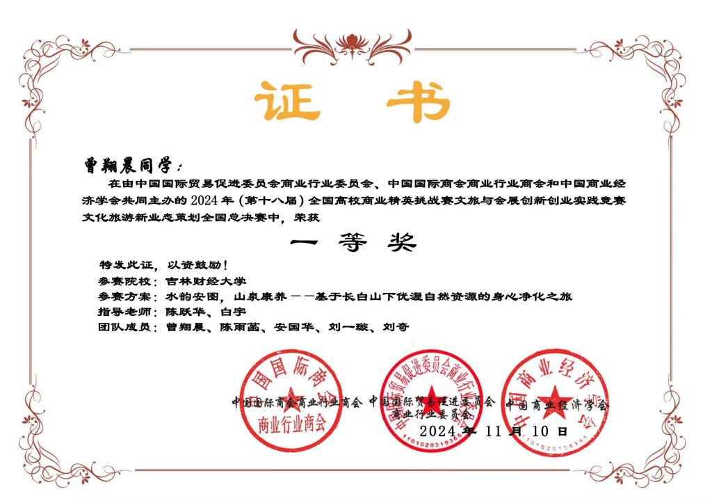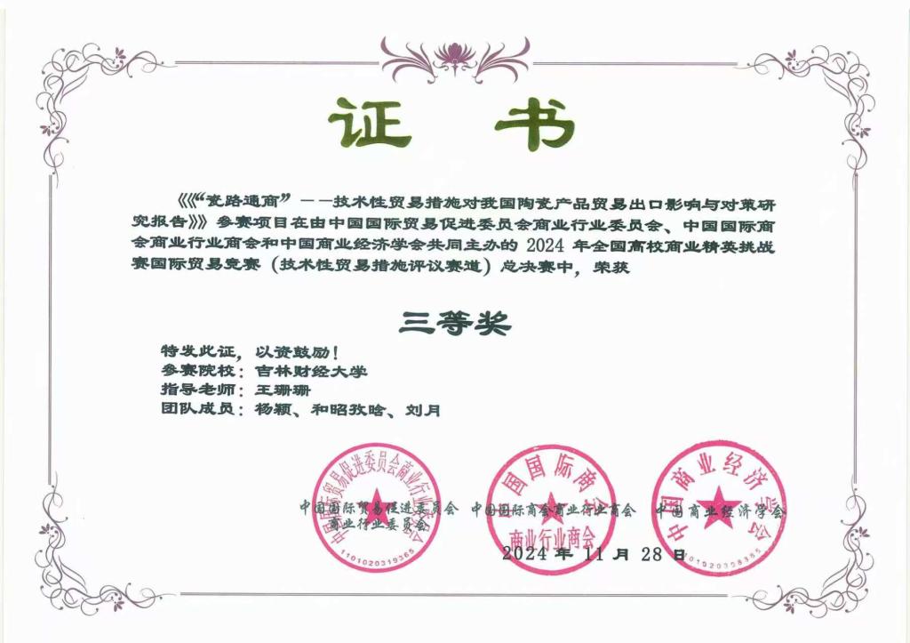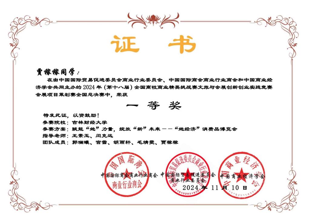 本网讯(国际经济贸易学院 供稿)近日,2024年全国高校商业精英挑战赛全国总决赛落下帷幕,Beat365被竞赛组委会授予“最佳院校组织奖”;学校师生摘得此项大赛国家级奖项24项,其中文旅与会展创新创业实践竞赛一等奖3项、二等奖6项、三等奖2项;国际贸易竞赛二等奖9项、三等奖4项。