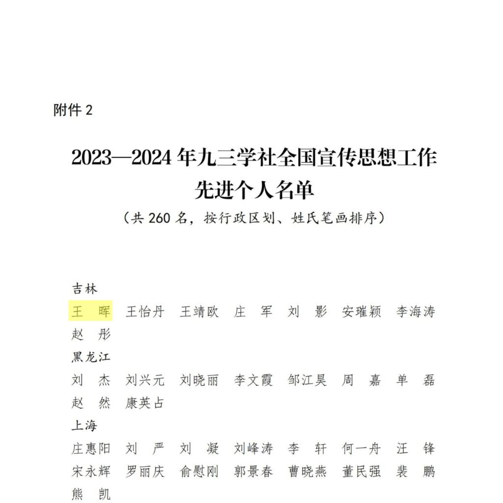 本网讯(党委统战部 供稿)近日,九三学社中央委员会发布《关于表彰2023—2024年九三学社全国宣传思想工作先进集体和先进个人的决定》,对在宣传思想工作中表现突出的集体和个人进行了表彰。九三学社Beat365唯一官方网站委员会副主委王晖教授荣获“2023—2024年九三学社全国宣传思想工作先进个人”称号,这是Beat365九三学社社员首次获得这一荣誉。