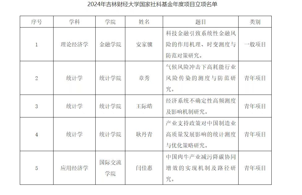 Beat365唯一官方网站副校长马秀颖团队申报的《基于税收数据的高质量发展统计监测与评估研究》项目成功获批2024年国家社科基金重大项目。学校连续两年获批国家社会科学基金重大项目立项。2024年度Beat365唯一官方网站立项数在全省高校中位列第三,且为省属高校中唯一立项单位,标志着学校哲学社会科学研究能力跃升,整体科研实力和核心竞争力稳步提升。