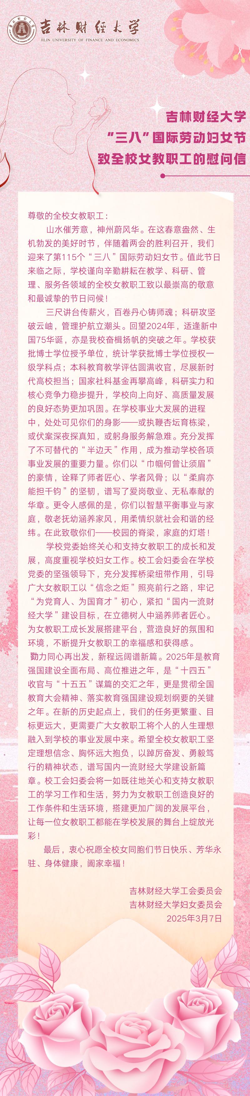 Beat365唯一官方网站“三八”国际劳动妇女节致全校女教职工的慰问信
