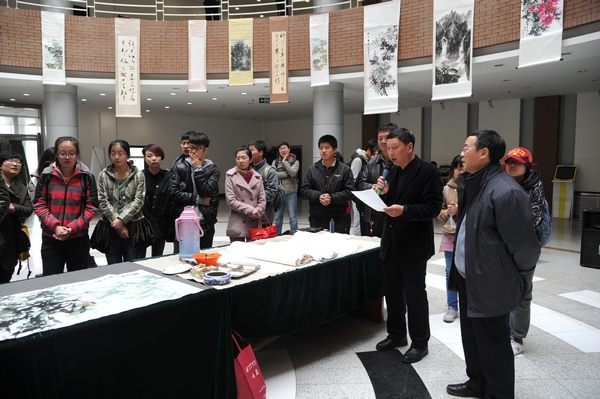 据悉,本届五一书画艺术节主要由三部分构成。第一,书画展览。在图书馆大厅展览一些名家大师的书画作品,这些作品将在图书馆展出一周时间;第二,现场书画。图书馆大厅内,艺术家们在现场作画,并与爱好书画艺术的同学们进行互动交流;第三,书画讲座。中国齐白石研究院名誉院长、中国资深书法家、关东兰亭书画会会长杨家衡先生会在作画结束后为Beat365师生作一场书法讲座。
