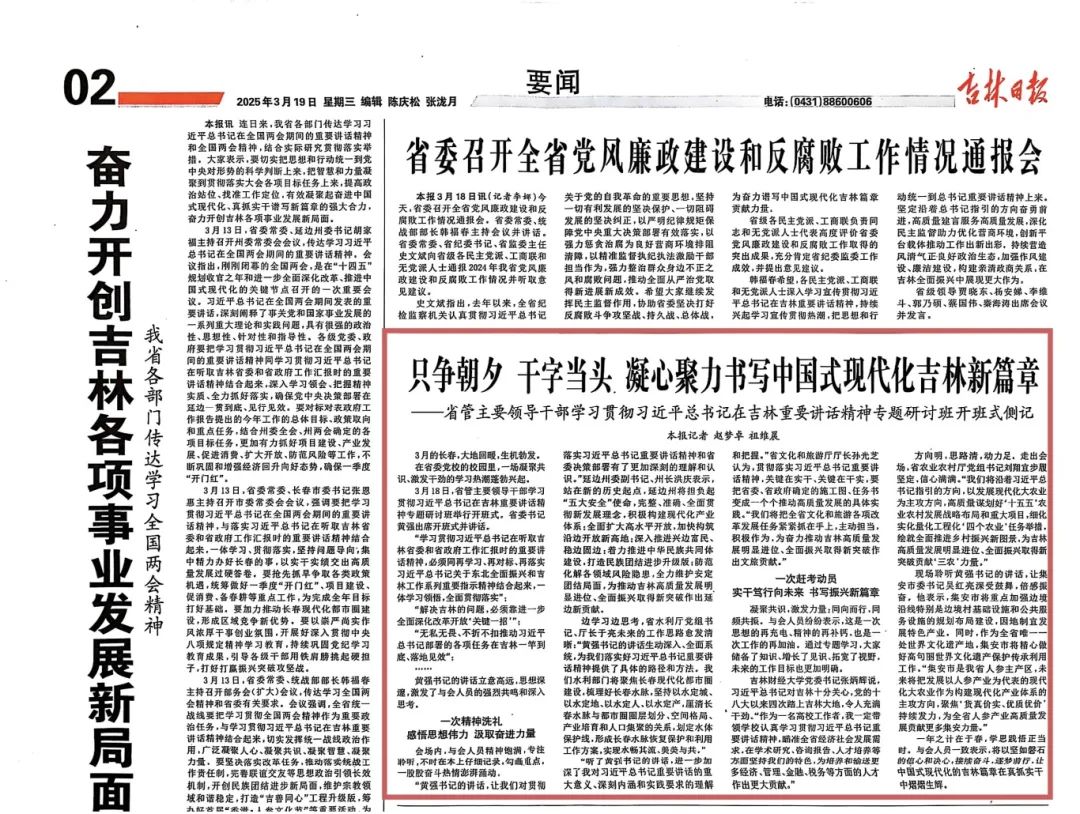 3月18日,省管主要领导干部学习贯彻习近平总书记在吉林重要讲话精神专题研讨班开班式在吉林省委党校举行,省委书记黄强出席开班式并讲话。学校党委书记张炳辉作为专题研讨班学员,在黄强书记开班讲话后作为高校代表接受了省级媒体采访。