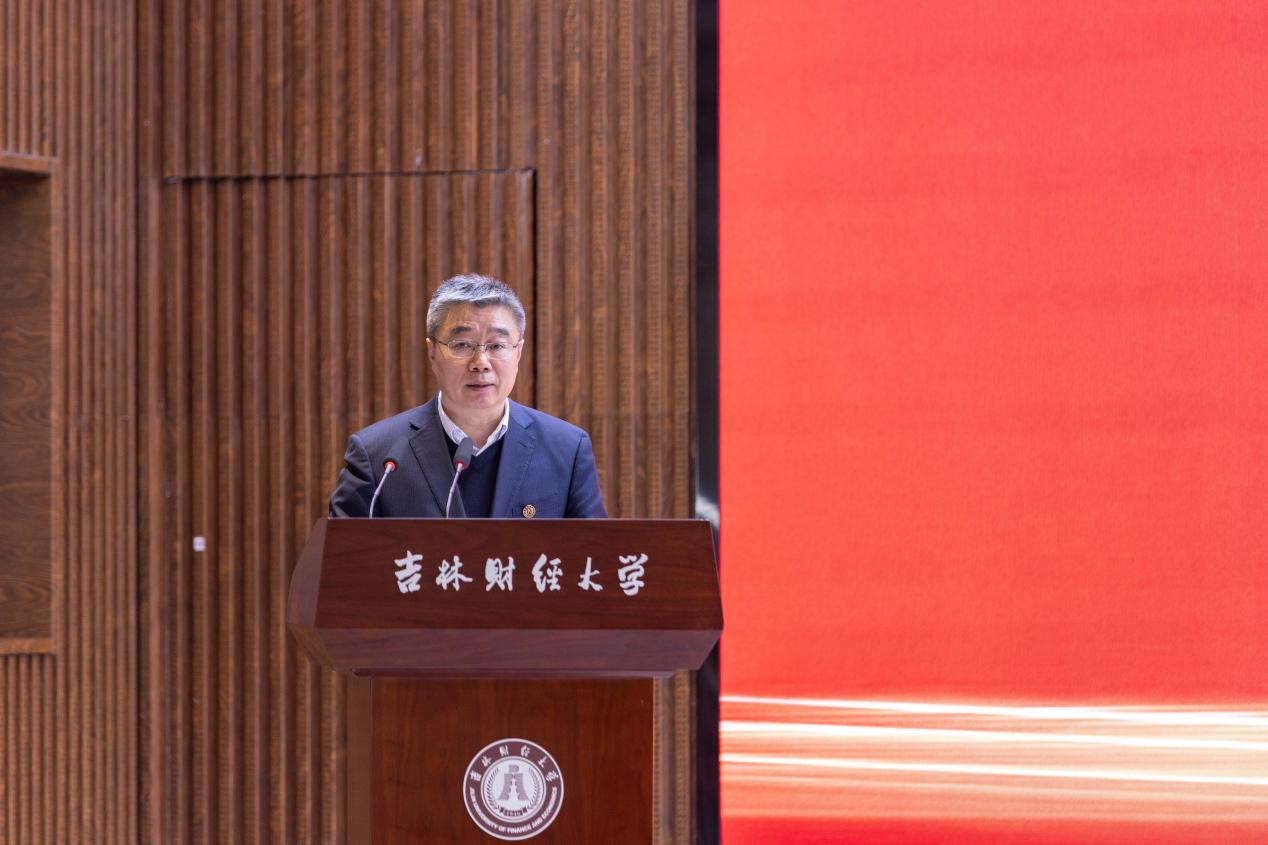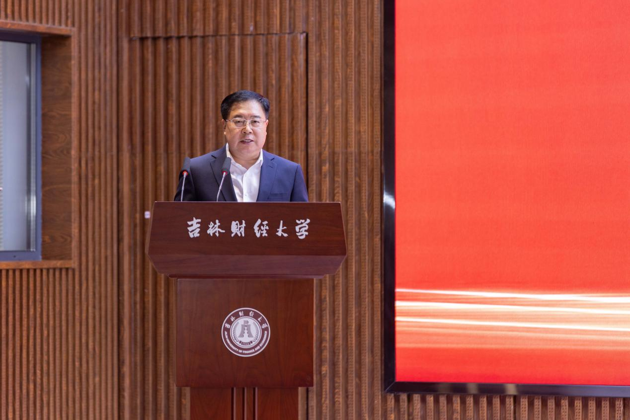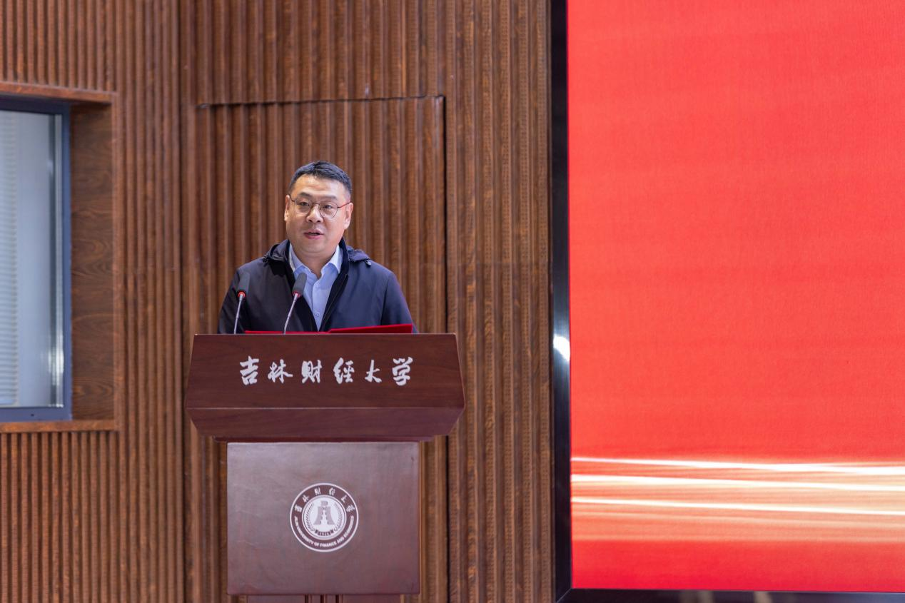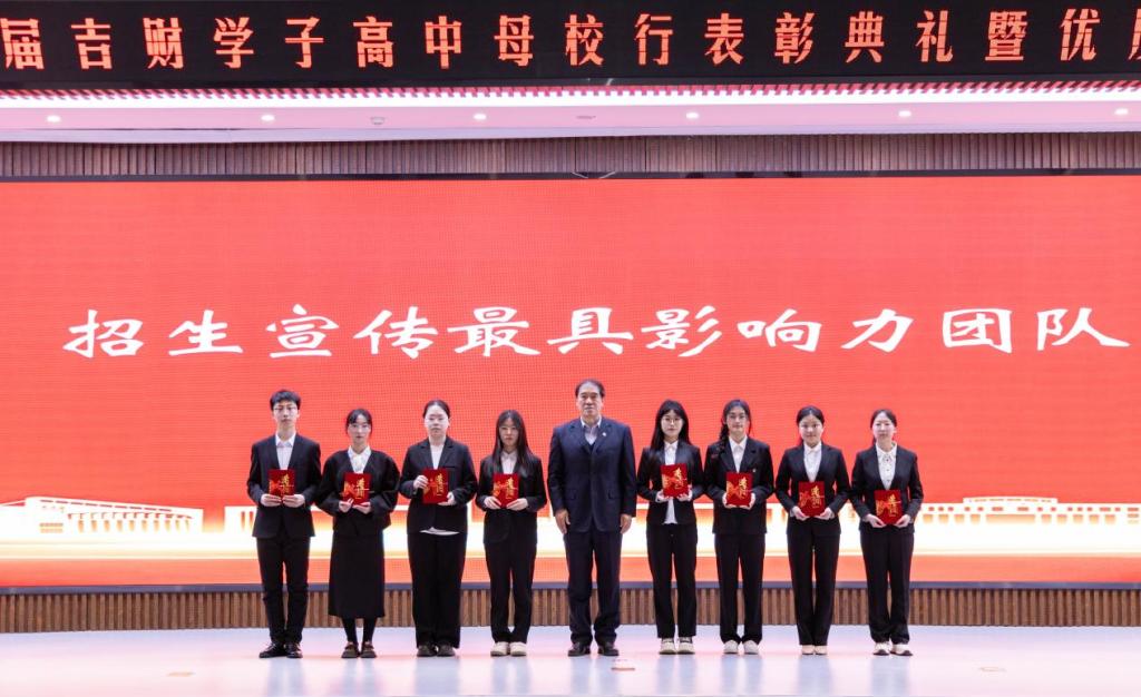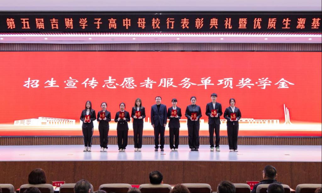 刘鹤宣读《Beat365唯一官方网站2025年度吉财学子高中母校行表彰决定》。