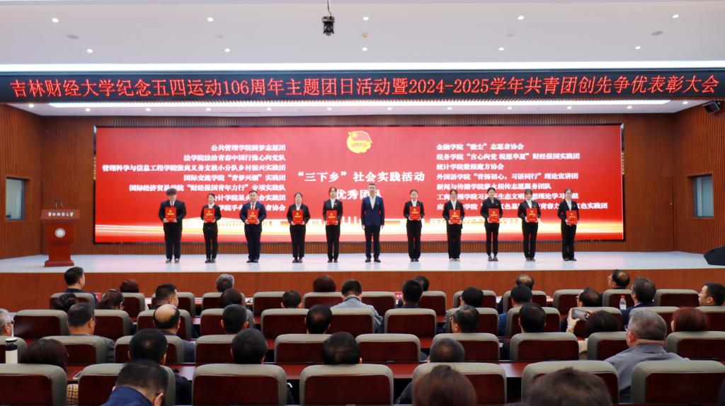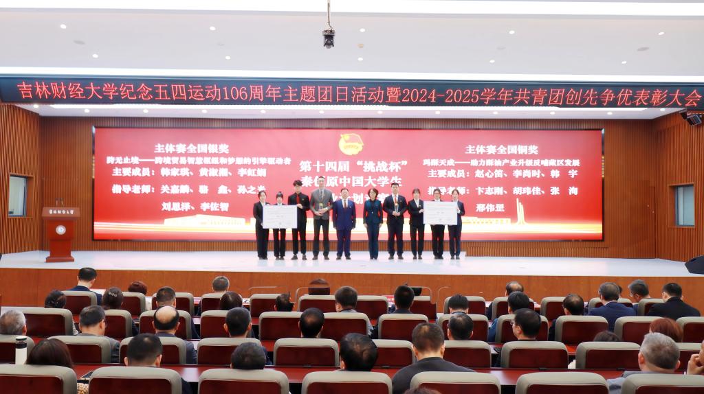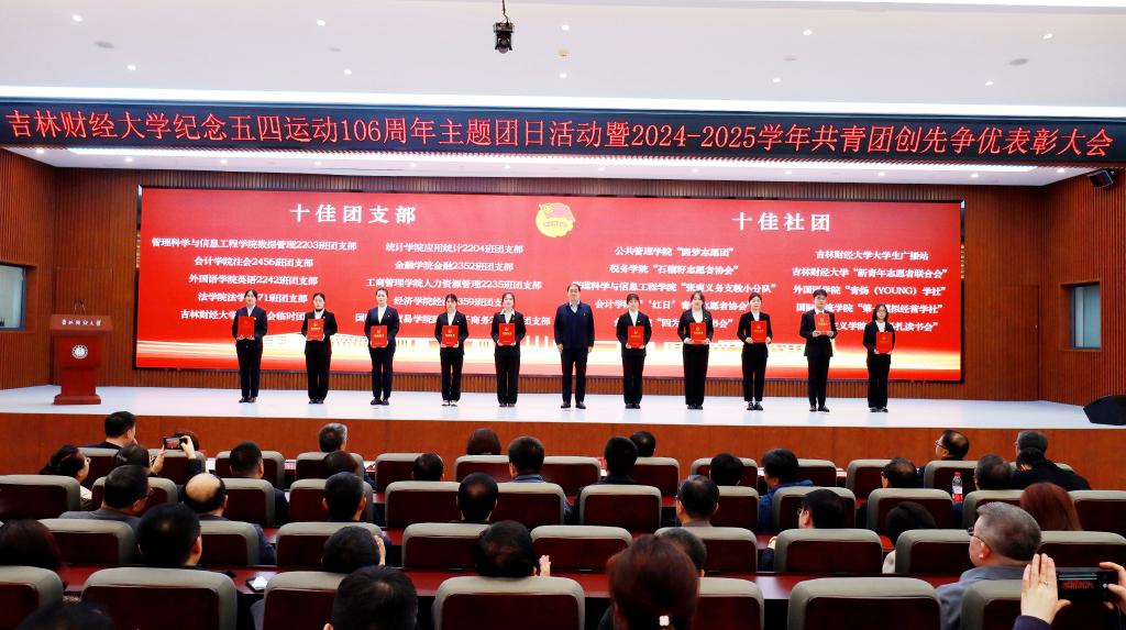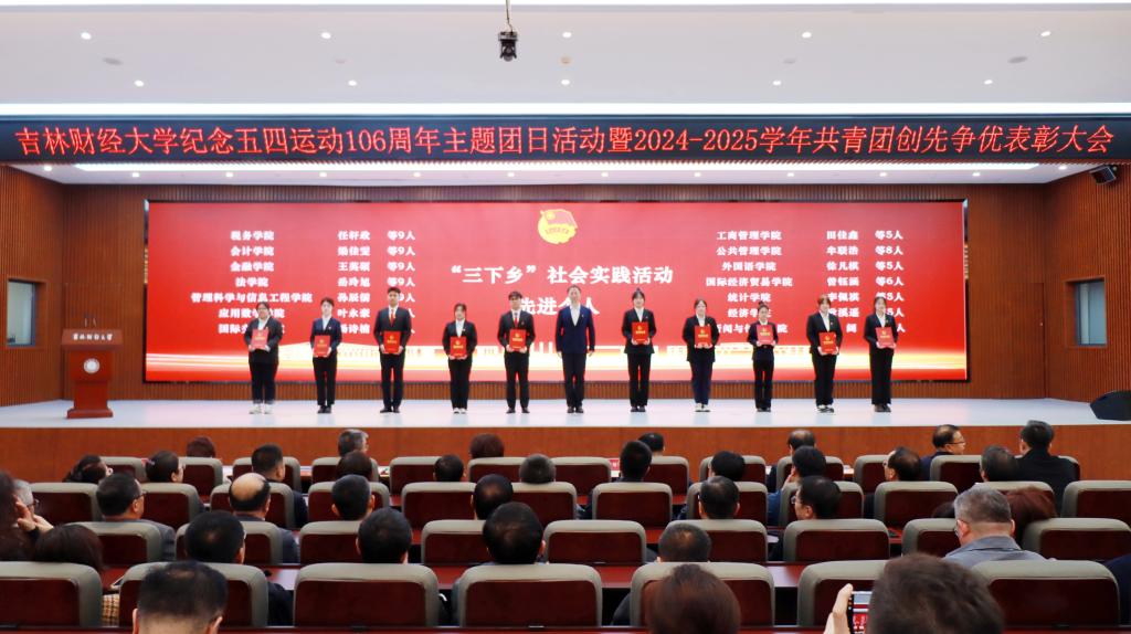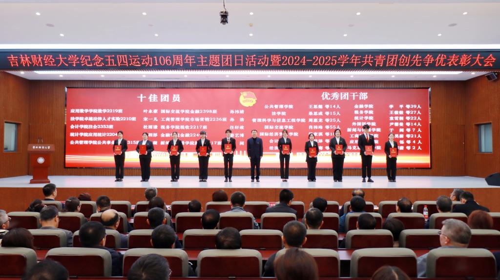 张炳辉以《传承五四精神,勇担强国使命》为主题,代表学校党委向全校共青团员和青年师生致以节日的问候,向受表彰的先进集体和优秀个人表示祝贺。在简要总结了过去一年学校共青团工作所取得的成绩后,张炳辉围绕培育时代新人,提出四点工作要求:一要坚定理想信念,肩负伟大复兴使命,扎实开展“团校”“青年大学习”“青马工程”等载体建设,教育引导青年坚定不移听党话、跟党走。二要始终把握根本,励志全面成长成才,开展丰富多彩的学生社团活动,积极打造和依托社会实践载体,凝练理论成果。三要勇于担当作为,积极投身伟大实践,将个人追求主动融入社会发展,融入学校高质量发展总体进程。四要勇于自我革新,团结凝聚青春力量,始终坚持严实主基调,对标从严治党新要求,推进从严治团新发展。最后,张炳辉指出,习近平总书记在年初听取吉林省委和省政府工作汇报后,强调了深入落实党中央关于推动新时代东北全面振兴的战略部署;省委书记黄强代表省委描绘了“五色吉林”的振兴蓝图。全体吉财青年学子要深入学习和贯彻落实党中央的部署和省委要求,把握好时代机遇,在新时代推动吉林高质量发展明显进位、全面振兴取得新突破的火热实践中,贡献吉财青春智慧和力量。