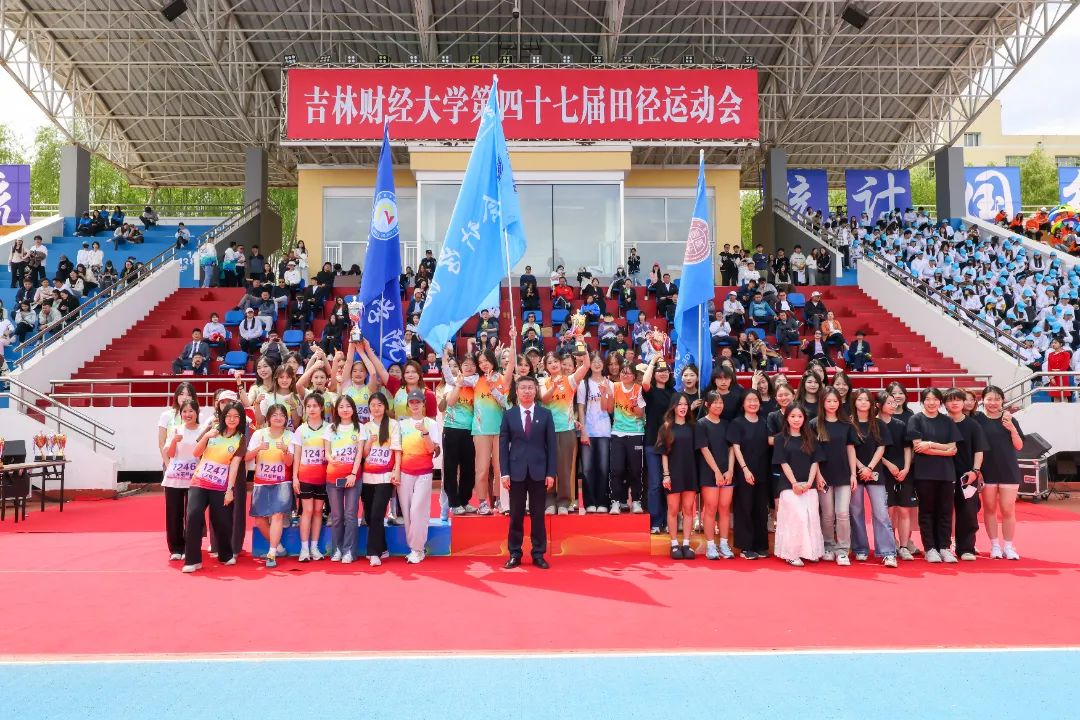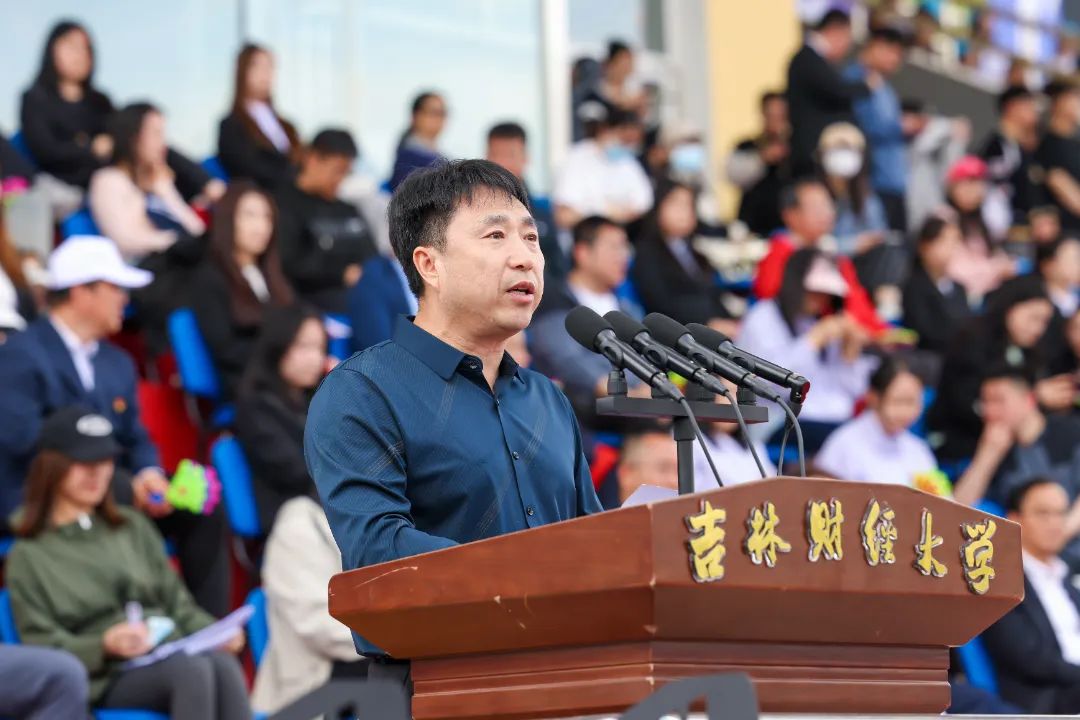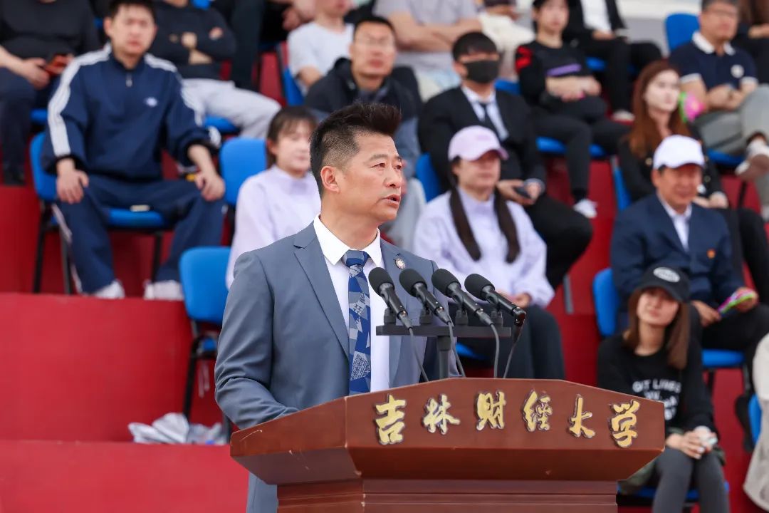 最后,党委副书记刘鹤致闭幕词,他代表组委会向辛勤工作的裁判员、工作人员表示衷心的感谢,向取得优异成绩的运动员们表示热烈的祝贺,向积极参与的每一位同学表示诚挚的谢意!刘鹤指出,运动会不仅是体育竞技的盛会,更是精神风貌的全面展示。学校党委始终将体育育人教育放在重要位置,通过体育实践培养学生的体育精神和文化,检验体育教育成果。本次运动会就是对学校体育教育和学生素质素养教育成果的一次全面展示,全体师生共同见证了开幕式上思政元素与体育精神的完美融合,领略了各代表团的独特魅力以及团体操中洋溢的青春朝气,看到了同学们的拼搏精神,感受到了团队合作的力量,发扬了“更快、更高、更强、更团结”的奥林匹克精神,展现了吉财人追求卓越、勇攀高峰的风采,全体吉财人携手同心,共同奏响了一曲激昂的青春乐章!希望全校师生要以此次运动会为契机,将创先争优、矢志奋斗的精神,内化为学习工作中的不竭动力,以更加饱满的热情、更加健康的体魄、更加坚定的意志,携手并进,为学校高质量发展贡献力量,共创更加美好的明天!