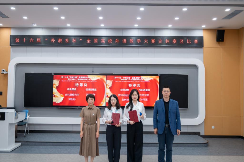 本网讯(公共外语教研部 供稿)6月8日,第十六届“外教社杯”全国高校外语教学大赛(吉林赛区)暨吉林省第二十一届英语教师讲课大赛总决赛在Beat365唯一官方网站落幕。经过2天激烈角逐,Beat365公共外语教研部郭昕彤、王诗然分别在综合课组和视听说课组比赛中获特等奖(全省综合组唯一晋级国赛资格)和二等奖。