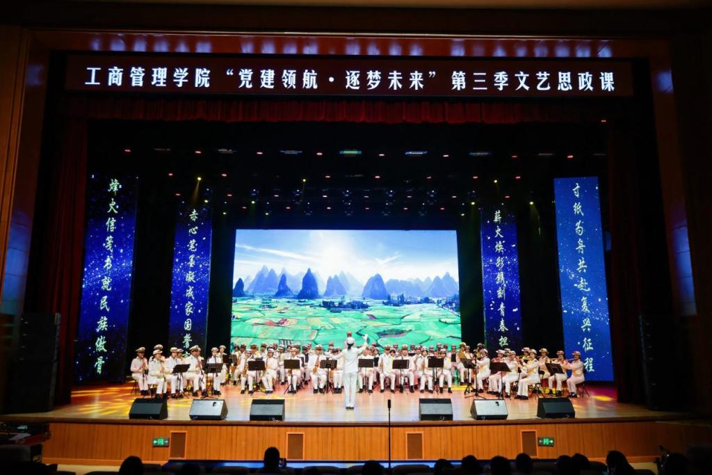 本网讯(工商管理学院 供稿)6月18日,工商管理学院在多功能学术中心举办“党建领航·逐梦未来”第三季文艺思政课。学校党委副书记岳宏、刘鹤,纪委书记丁庆东,副校长王菁华、杨楠到场观看。