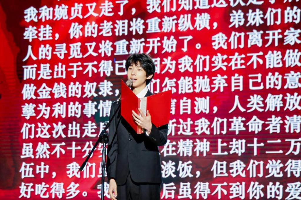第二篇章“信仰之光中的家国抉择”,通过诵读革命先辈戴安澜和李临光的家书,展现了革命先烈们坚定的信仰与伟大的家国情怀。由学生演绎的原创歌曲《红色家书》和舞蹈《明德长卷》,将校训精神与红色文化相融合,充分展现了吉财青年传承红色基因、坚定理想信念的精神风貌。