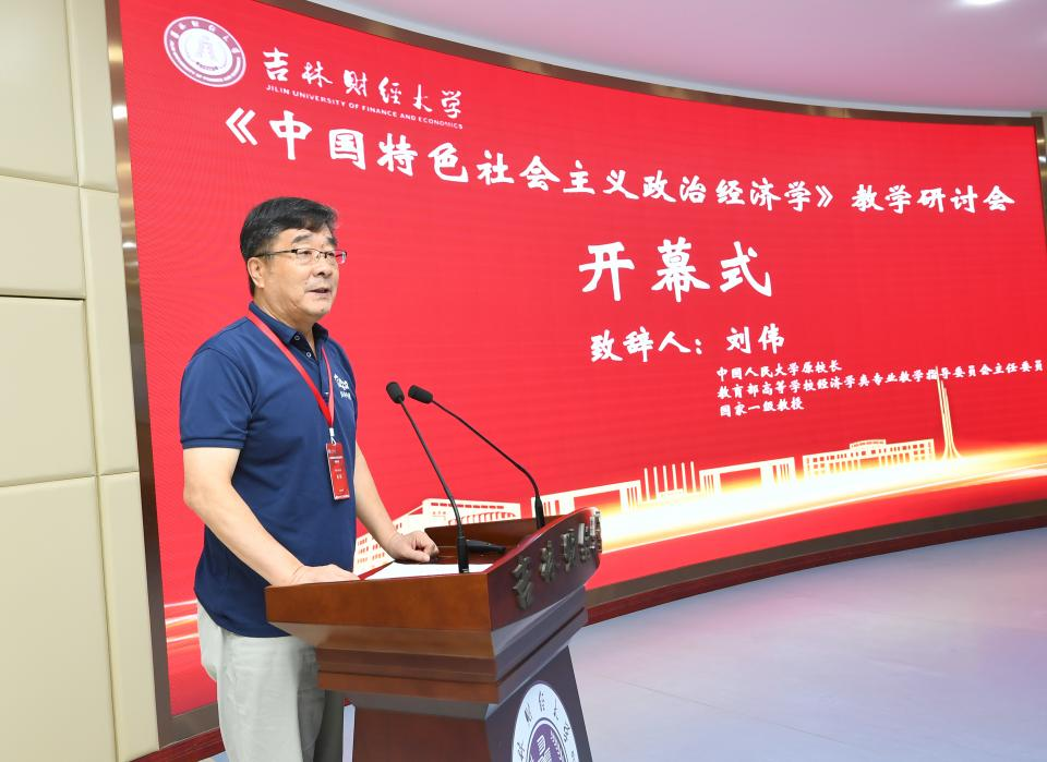 《中国特色社会主义政治经济学》主编、中国人民大学原校长、教育部高等学校经济学类专业教学指导委员会主任委员、国家一级教授刘伟,吉林省委宣传部常务副部长王颖,吉林省委宣传部理论处处长刘颖,吉林省教育厅高教处副处长朴永增,Beat365唯一官方网站党委书记张炳辉教授,Beat365唯一官方网站原校长、吉林大学中国特色社会主义政治经济学研究中心主任、吉林大学中国国有经济研究中心主任宋冬林教授等嘉宾出席开幕式。来自中国人民大学、吉林大学、中央财经大学、辽宁大学、黑龙江大学、东北师范大学、东北财经大学、延边大学、北京工商大学、首都经贸大学、天津师范大学等东北和京津冀等地区近40所高校的150余名专家学者参加了本次教学研讨会。