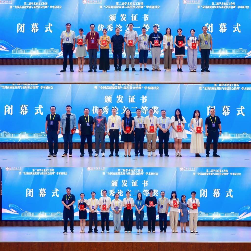 会议设置10个平行论坛,涵盖了数据科技、社会治理、养老服务、新质生产力、数字经济、区域协调发展等多方面议题,近120余名与会代表重点讨论了这些因素对高质量发展及基层治理的影响,20位专家及期刊主编进行现场点评指导。最终,由24家高水平学术期刊组成的论文评审委员会评选出了107篇优秀论文,其中一等奖15篇,二等奖37篇,三等奖55篇。