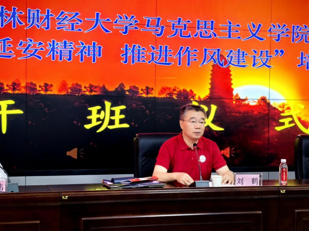本网讯(马克思主义学院 供稿)7月20日至24日,马克思主义学院组织思政课教师赴延安大学泽东青年干部学校开展“弘扬延安精神 推进作风建设”暑期实践研修培训,学校党委副书记刘鹤参加培训班并在开班仪式上作动员讲话。