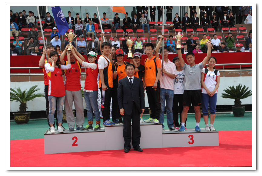 5月18日上午11:30,运动会闭幕式正式开始。校党委书记金硕、校党委副书记兼副校长郝中华、校纪委书记王时刚、副校长张越杰分别为获奖代表队颁发了奖杯。