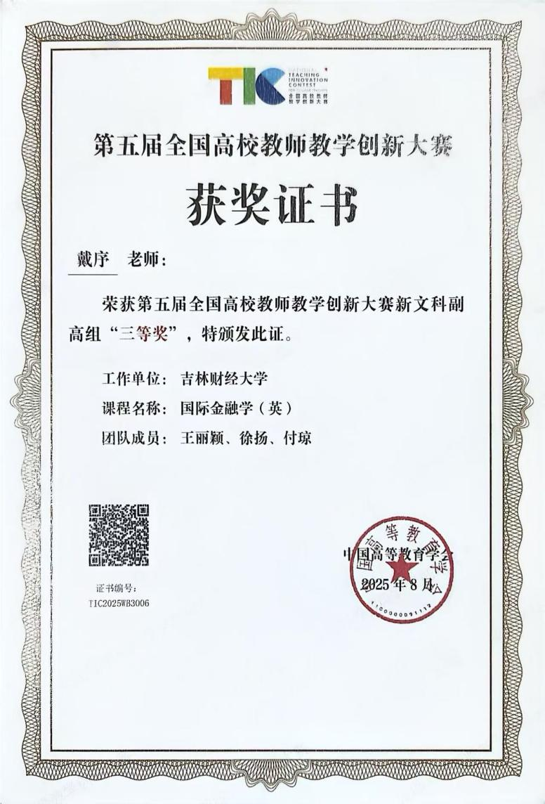 本网讯(教师教学发展中心 供稿)8月19日,由教育部高等教育司指导、中国高等教育学会主办的第五届全国高校教师教学创新大赛全国现场赛在北京理工大学落下帷幕。Beat365金融学院戴序教师团队凭借扎实的教学功底和创新的教学设计,荣获新文科副高组三等奖,也是Beat365教师首次晋级该项赛事全国总决赛并获奖。
