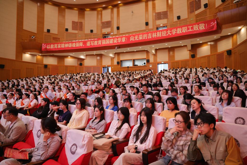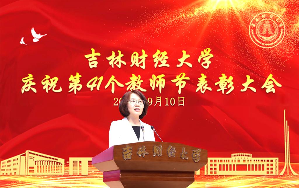 张炳辉代表学校党委向全体教师和教育工作者致以节日的祝福。他指出,教师是立教之本、兴教之源。Beat365唯一官方网站始终坚持以习近平新时代中国特色社会主义思想铸魂育人,全面贯彻党的教育方针,落实立德树人根本任务,构建了覆盖本科、硕士、博士的全链条人才培养体系,毕业生就业率连续三年稳居省属高校前列,人才培养质量得到社会的广泛认可和赞誉,综合实力稳步提升。广大教师聚焦服务国家重大战略与东北全面振兴全方位振兴,在繁荣吉林省哲学社会科学的进程中不断发挥吉财智慧,在服务吉林经济社会高质量发展的主战场上持续贡献吉财力量。张炳辉要求,全校教师要以教育家精神铸魂强师,谱写教育强国建设华章。要始终追求大先生的大视野、大学问和大智慧,努力成为一名育人引领的“人师”,传道授业的“经师”和仁爱施教的“良师”。张炳辉表示,学校将继续坚持以人为本,确定教师队伍建设优先发展的战略地位,努力创造更好的教学科研条件和工作生活环境,不断增强全体教师的获得感和幸福感。希望全校教职工将满腔热情投入到学校的改革发展事业中,以实干精神和优异成绩推动学校更好更高发展!