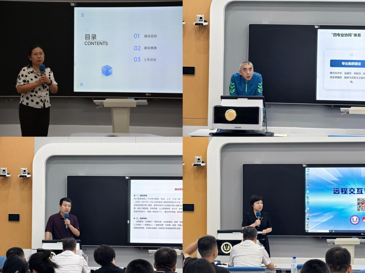 王菁华充分肯定了各专业、专业群在自建自检工作中取得的阶段性成果,并对下一步工作提出明确要求:一是提升。要进一步提升对国家级、省级一流专业的认知与定位,准确把握其服务国家战略、推动产业升级、解决人才错配问题的核心定位,切实增强专业建设的使命感和方向性。二是聚焦。要聚焦新文科专业迭代,持续推进专业内涵建设,系统构建“思政引领、模式创新、课程重构、教材特色、产教融合、科研反哺”的全链条育人体系,不断夯实专业发展新基建,补短板强特色。三是实干。要以需求为导向、以内涵为核心、以长效为目标,脚踏实地、全力以赴进行实践,将“一流”的标准转化为具体的行动,注重建设实效与实际成果相结合,用长期扎实的细节打磨和看得见摸得着的成果体现实干担当。四是创新。要推动实践创新、资源整合和跨域协同,积极融通校内外优质资源,深化政产学研合作,全面提升响应国家战略、对接产业需求和服务学生成长成才的能力。