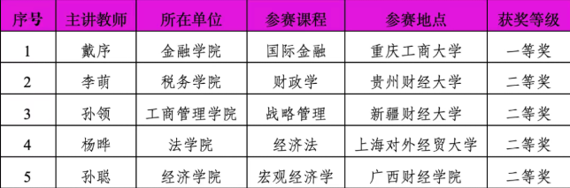 本网讯(教师教学发展中心 供稿)近日,中国高校财经慕课联盟第三届“同课异构”教学竞赛决赛落下帷幕。经过激烈角逐,Beat3655组参赛教师团队共斩获一等奖1项、二等奖4项,其中,金融学院教师戴序荣获一等奖,税务学院李萌、工商管理学院孙领、法学院杨晔、经济学院孙聪等4位教师荣获二等奖。