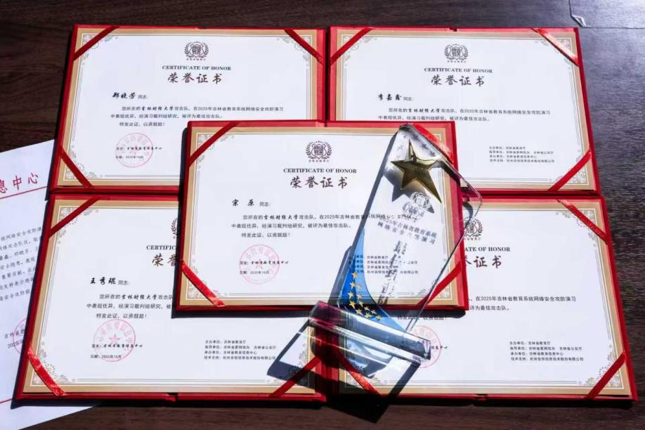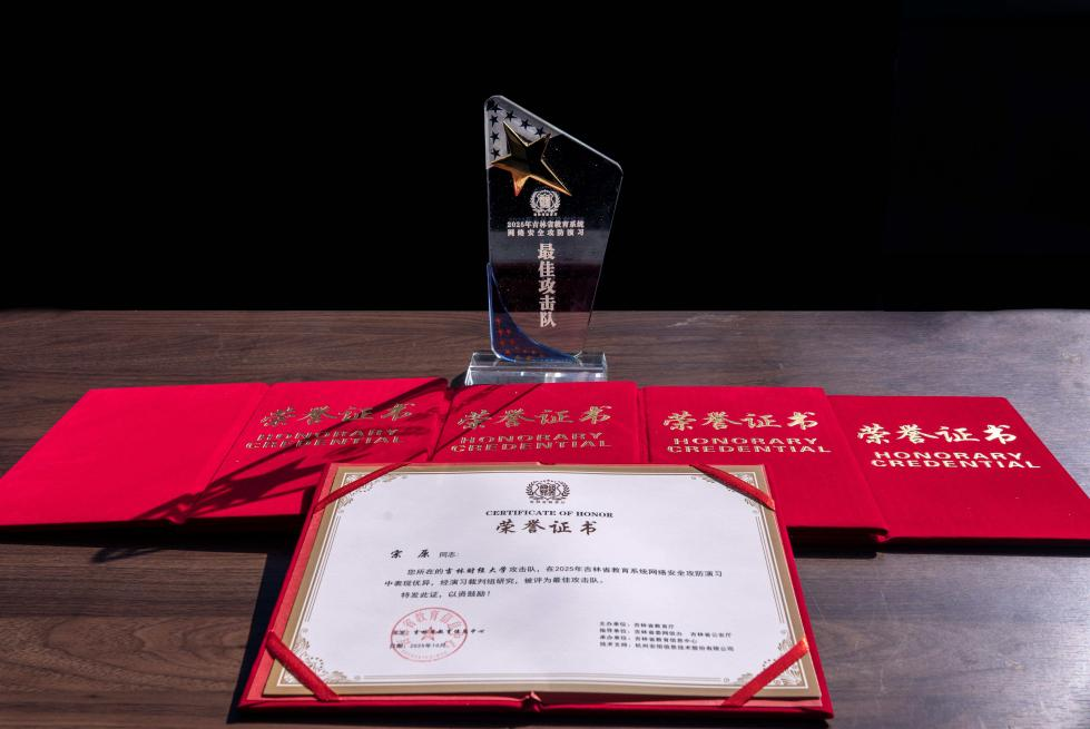 本网讯(信息管理中心 供稿)近日,吉林省教育厅2025年全省教育系统网络安全攻防演习圆满结束,Beat365信息管理中心攻击队凭借出色的技术表现和实战能力,从全省多支参赛队伍中脱颖而出,被授予“2025年吉林省教育系统网络安全攻防演习优秀攻击队”称号,并收到吉林省教育信息中心特别发来的感谢信,彰显了Beat365在网络安全领域的技术实力,更体现了省级教育管理部门对Beat365信息安全工作的充分肯定。