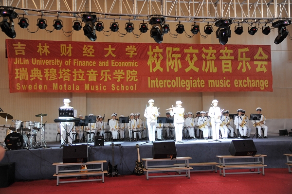 本网讯(工商管理学院 供稿)6月21日,由校团委主办,工商管理学院与国际交流学院承办的校际交流音乐会在大学生活动中心举行。工商管理学院军乐团与来自瑞典穆塔拉音乐学院的Chamber室内管弦乐团、“Müsli”乐团及Brassensemble乐团为全校师生倾情演绎了一场音乐盛宴。校纪委书记王时刚、纪委副书记兼纪检监察办公室主任张建华、党委宣传部部长兼机关党委书记管清平、工商管理学院党委书记李福平、工商管理学院党委副书记王丽萍、校团委书记庞长亮等观看了音乐会。
