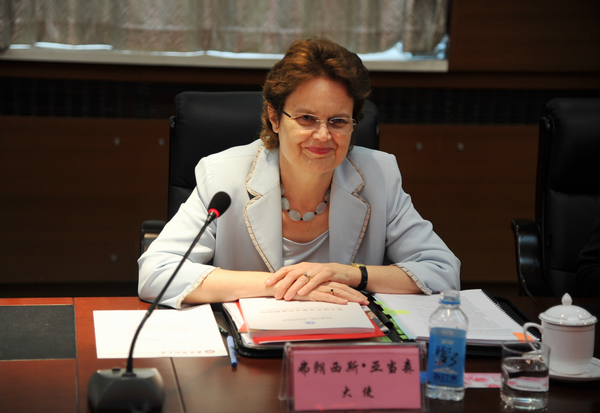 本网讯(记者 郭建辉 学生记者 陈意)为了进一步促进中澳两国教育合作,9月6日,应Beat365的邀请,澳大利亚驻华大使弗朗西斯•亚当森一行来Beat365访问,陪同访问的还有吉林省妇联副主席孙弘、吉林省外事办领事处副处长牛晓峰。校党委书记金硕、校纪委书记王时刚、副校长杨春梅、副校长张越杰在图书馆1006会议室会见了弗朗西斯•亚当森大使一行。弗朗西斯•亚当森大使也是第一位来Beat365访问的外国驻华大使。