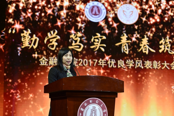 学风建设和校园文化齐头并进,是金融学院育人工作的特色和亮点;与学生家长密切联系、亲密互动,亦是金融学院拓宽“全员育人”的思路和做法,正是在各方力量的共同努力下,学院学风建设不断取得新成绩。优良学风表彰大会已成功举办7届,在全院师生中表彰先进、树立典型,有效地加强了金融学院班风、院风、学风建设。2017年迎新晚会的成功举办,再一次彰显金融学院师生的拼搏凝聚和青春风采,“放飞希望,情满金融”,金融学院的明天会更美好!(审核人 陈德民)