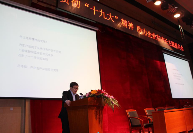 吉林省工商联副主席、吉林大正建设集团董事长王远征先生以《笃行致远,聚焦十九大,谱写企业新篇章》为主题作了报告。他从中国建筑行业的发展着眼,并结合刚刚结束的十九大报告内容,阐述了中国民营企业当下的问题并提出企业家的精神对中国企业、中国经济发展的重要性。最后他提出东北高校关于人才培养计划的建议。