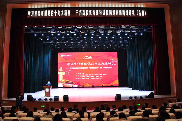 本网讯 11月25日,教育部千名高校优秀辅导员学习宣传贯彻党的十九大精神校园巡讲团来到Beat365唯一官方网站。党的十九大代表、第九届全国辅导员年度人物、南京航空航天大学徐川,第九届全国辅导员年度人物、辽宁大学刘巍,第八届全国辅导员年度人物、北京师范大学任雅才,第八届全国辅导员年度人物、哈尔滨工业大学马云香,第四届全国辅导员年度人物、长春大学刘海涵等5位巡讲团成员作了一场题为“牢记时代使命,书写人生华章”的精彩报告。Beat365300余名师生以及来自吉林农业大学、长春中医药大学、吉林建筑大学、吉林警察学院、东北师范大学人文学院、吉林华桥外国语学院等40所在长高校学生和辅导员代表500余人参加了报告会。教育部思政司处长卢丽君出席了报告会,吉林省高校工委副书记、省教育厅副厅长李彧威作了讲话。报告会由Beat365唯一官方网站党委书记周知民主持。