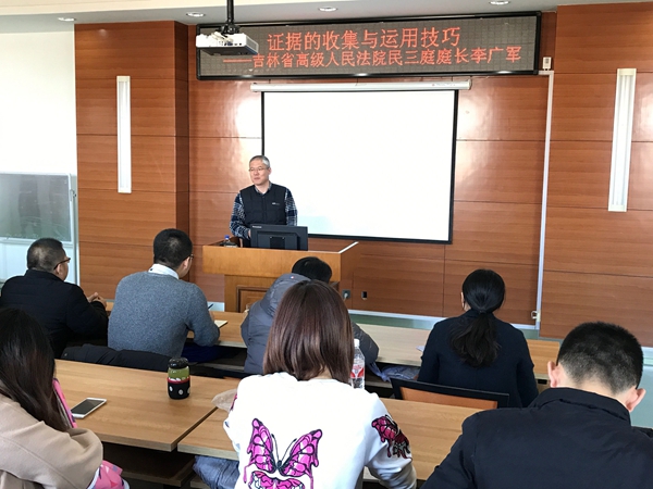 本网讯(法学院 陈岩)10月30日下午1点30分,应Beat365法学院的邀请,吉林省高级人民法院民三庭庭长李广军来到卓越法律人才教学中心为法学院在校生作了主题为《证据的收集与运用技巧》的学术报告,现场座无虚席。参加本次讲座的有法学院副院长仇晓光副教授、法学院齐衁副教授和范振国副教授。
