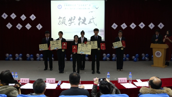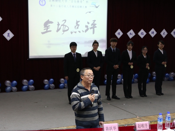 本网讯(公共管理学院 供稿)为了全面发展学生素质,提升学生走出校园后适应职场的能力,公共管理学院联合招生就业处举办了第十二届“吉仕教育杯”行政人员模拟招聘大赛,比赛历时历时一个半月,并于12月6日晚在第一教学楼1101举行决赛。长春市标准研究院院长秦晓辉、长春市标准研究院办公室主任范敬军、吉仕教育总裁资深公考行政职业教育专家李承润、吉仕教育职业能力与素养首席培训师赵唯序、新闻与传播学院教授李亚男、招生就业处副处长竭岸扬、公共管理学院行政管理系系主任陈跃华担任本次决赛的评委;莅临决赛现场的嘉宾有校党委宣传部部长、校团委书记庞长亮,公共管理学院党总支书记李俊生,新闻与传播学院团委书记姜福奇,会计学院团委书记王萌,税务学院团委书记赵黎光,金融学院团委副书记韩璐璐。