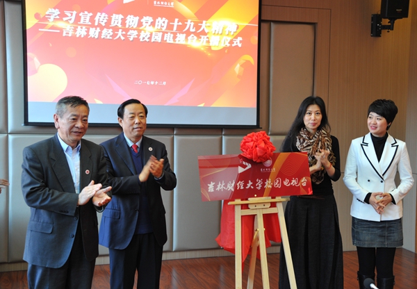 随后,在热烈的掌声中,校党委书记周知民,校党委副书记、校长宋冬林,吉林省广播电视艺术家协会副主席、秘书长王融,吉林电视台守望都市主持人、首席播音员郭佳共同为Beat365唯一官方网站校园电视台揭牌。